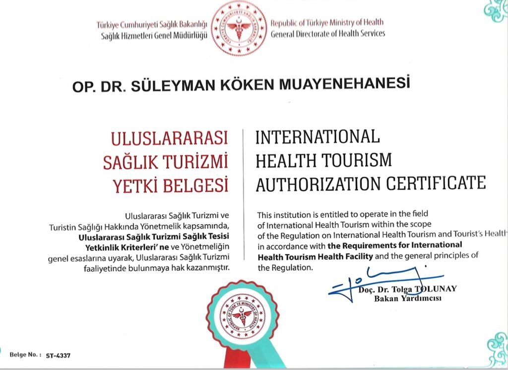 Bu belge, sağlık kuruluşunun uluslararası standartlarda hizmet verdiğini, gerekli altyapı, donanım ve personel yeterliliğine sahip olduğunu kanıtlar. Aynı zamanda yurt dışından hasta kabulünde güvenilirlik sağlar ve sağlık turizmi sektöründe yasal olarak faaliyet göstermenin ön koşuludur.